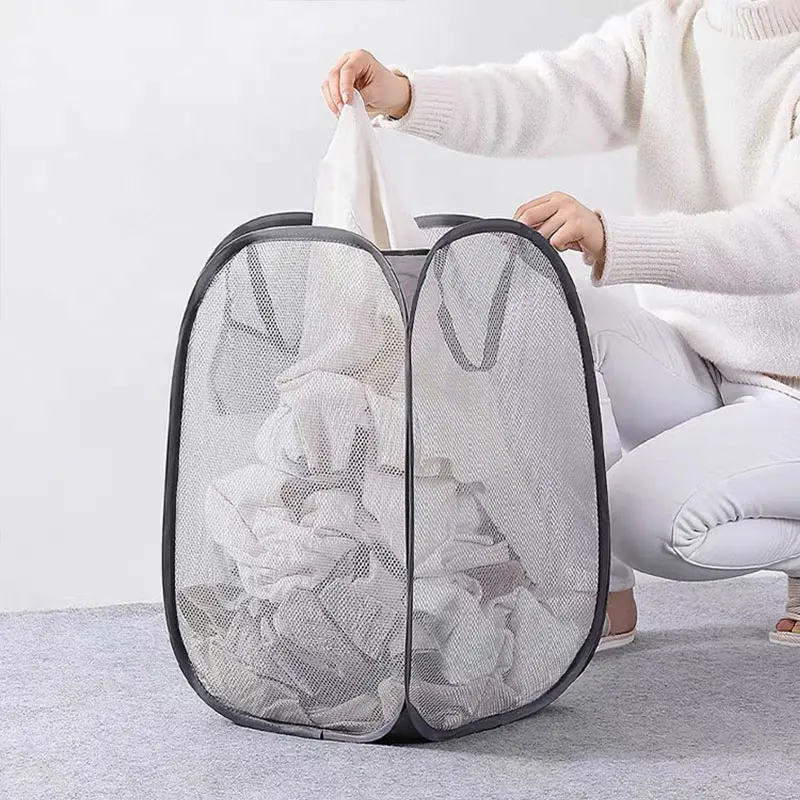 • سعة كبيرة :تحتوي سلة الغسيل المنبثقة الشبكية على سعة كبيرة ، مما يجعلها مثالية لتخزين الملابس المتسخة وغيرها من العناصر.